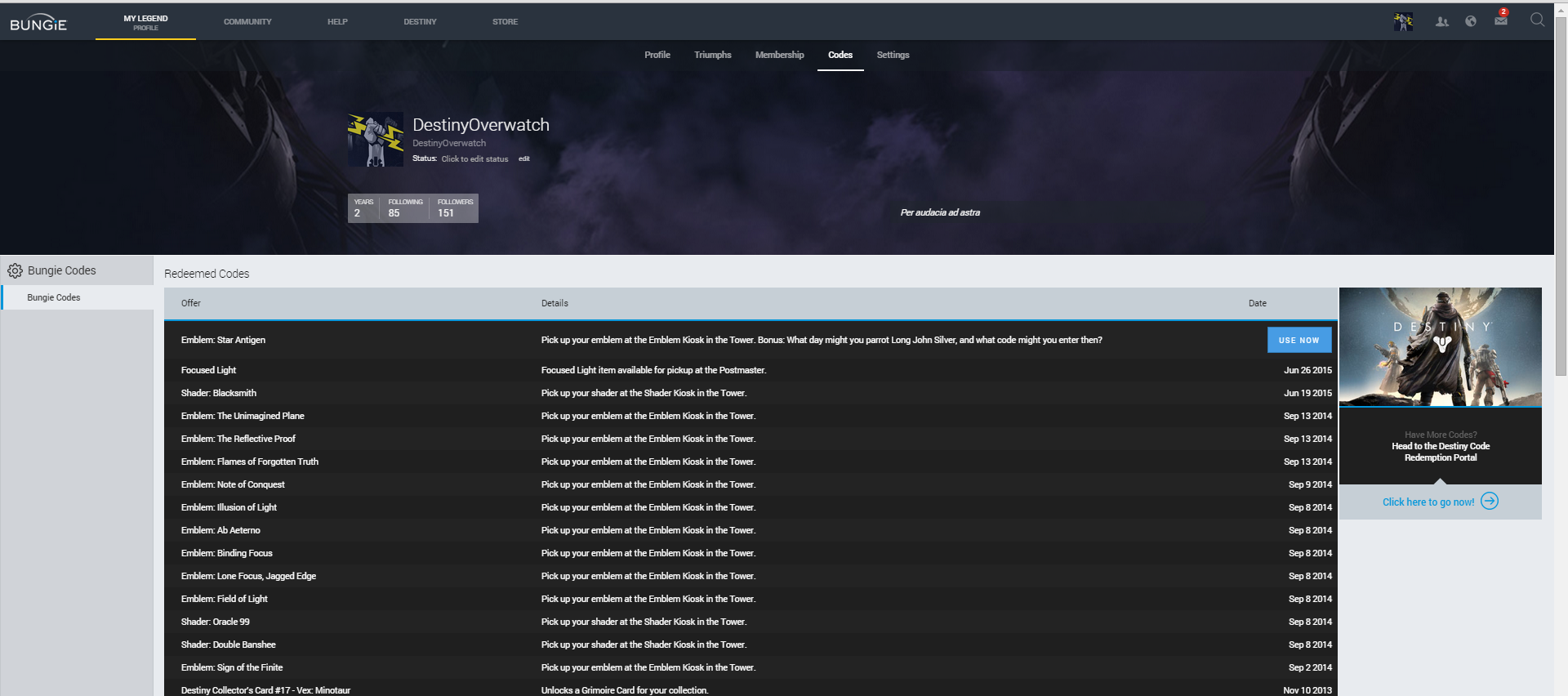Destiny Insula Thesauraria Abzeichen Code Hier Bekommen