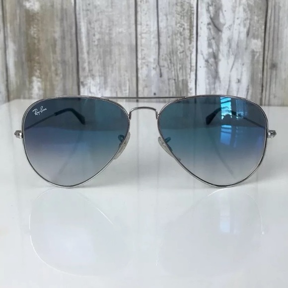 Authentic Ray Ban Aviator Blue Gradient Silver Sunglasses Rb3025